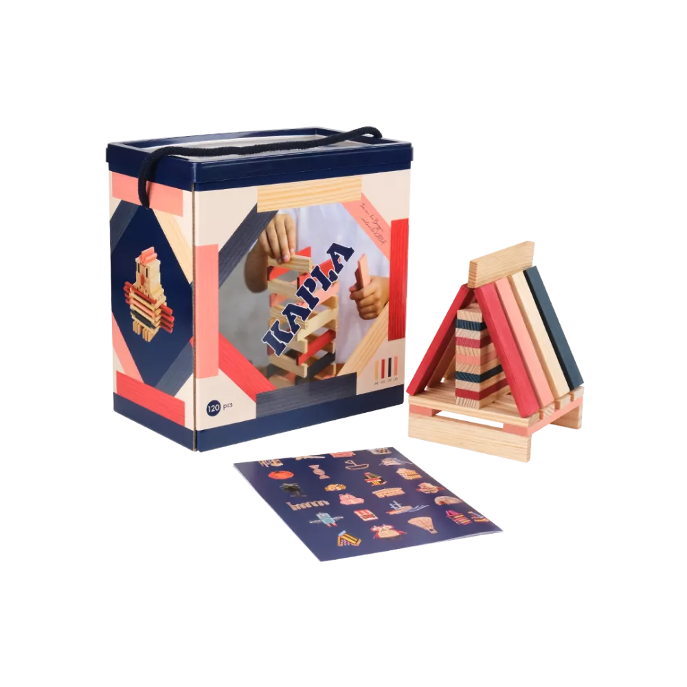Kapla 120 Parça Ahşap Blok - Lacivert Pembe Kırmızı