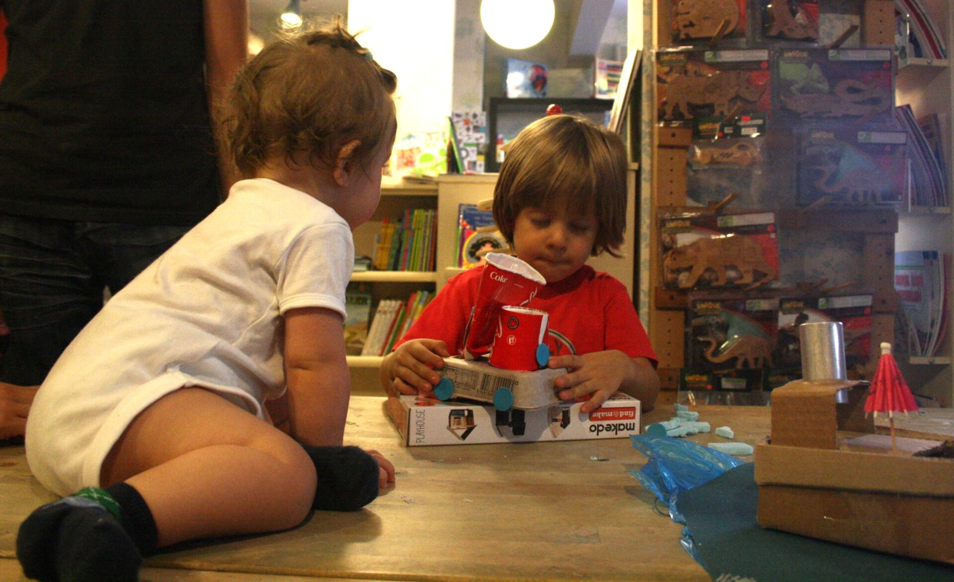 Atölye sürecinde çocuklar; oyun ve keşif yoluyla 2 farklı maker projesi yaparlar.